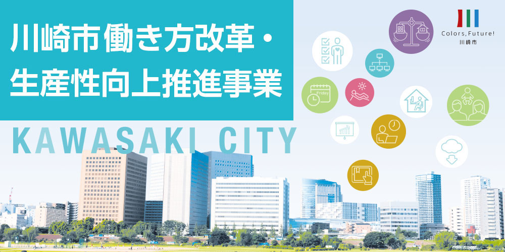 本サイトでは、働き方改革・生産性向上に取組む市内中小企業を支援するため、川崎市が実施する支援施策やイベント情報を掲載いたします。また、中小企業の皆様が取組内容を検討する際の参考としていただくため、川崎市をはじめとした公的支援施策等を活用して働き方改革や生産性向上を実現した企業の取組事例や、先進的・効果的な取組により「川崎市働き方改革・生産性向上推進事業者表彰企業」に表彰された企業の取組をご紹介いたします。
